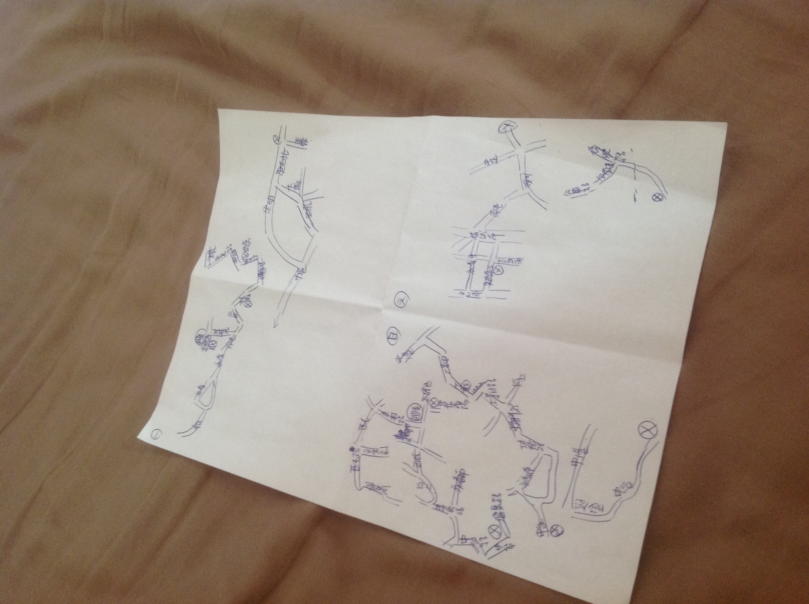 出發之前除了在電腦中先查好路線規劃,還為了要加深印象,用功地在白紙上刻下行程表地圖,滿抱信心迎接此次嚮導、金主兼司機的挑戰。