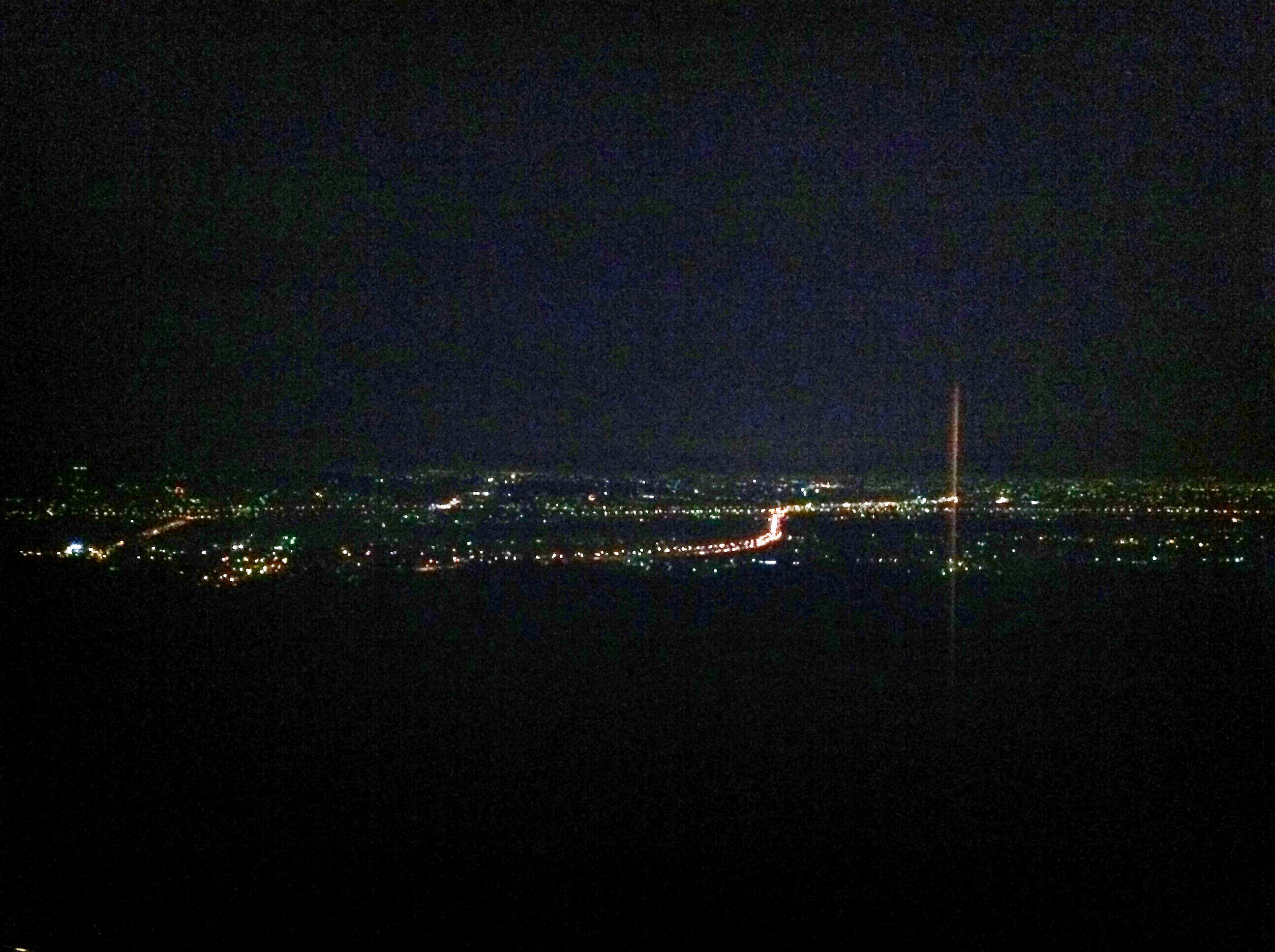 不出我所料,晚上窗簾拉開後躺在床上就可以看到平常在租屋處陽台也看得到的夜景。經過辛苦地奔波,我們從舊台中市,騎經龍井、大肚,回到烏日半山區,加上白日三番兩次地迷路,陽島太太整個處在累翻的狀態,心有餘而力不足地邊想著冰箱裡的馬卡龍,默默地睡著了。