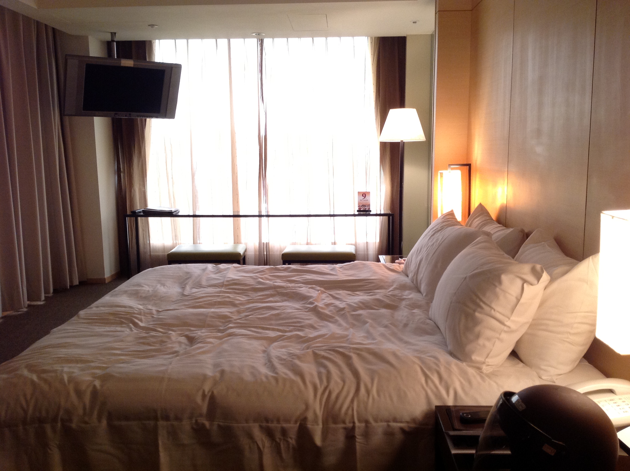 好不容易到達開有涼涼冷氣的飯店大廳,終於進到天堂,當然要逛一下大觀園。特價的房間只能選擇山景一側,不過我們的房間是角間有兩面玻璃,加上提前訂房所以住到高樓層,把窗簾拉開後還是能看到山下的市區景緻。