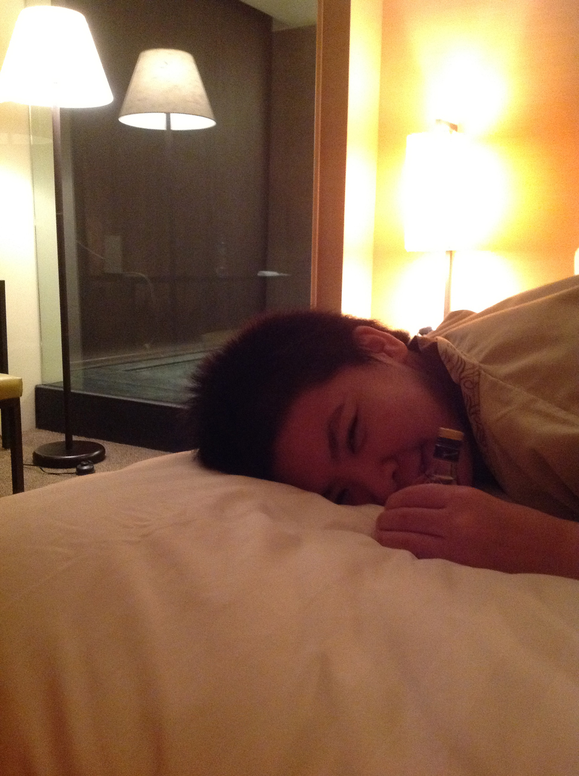 一個人清醒的房間,涼涼地無聊著,我洗了澡、放了溫泉池,讀了一會 kindle、望了一陣枕邊人,毫無動靜。轉頭看看時間還早,只要趕在十二點陽島太太波折日結束前把她搖起床完成切蛋糕儀式就好。
